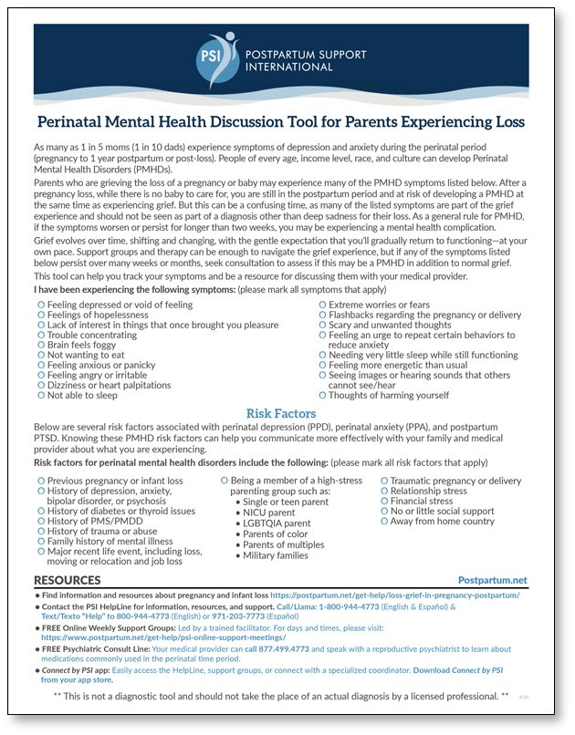 Perinatal Mental Health Discussion Tool for Parents Experiencing Loss