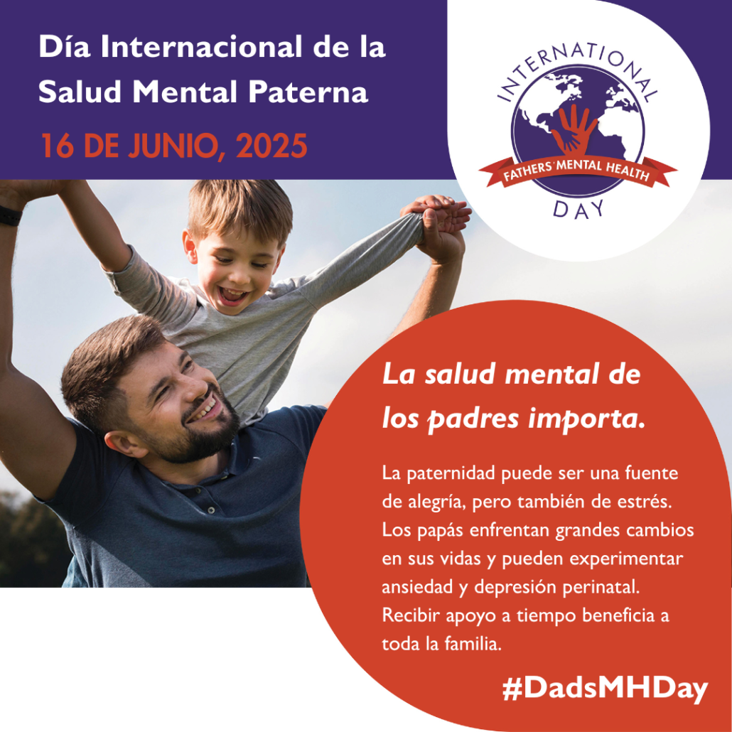 Como parte de nuestro compromiso con un enfoque de salud mental perinatal que incluya a toda la familia y los padres, Postpartum Support International se enorgullece de patrocinar el Día Internacional de la Salud Mental del Padre (International Father Mental Health Day – IFMHD). Esta iniciativa busca crear conciencia y reducir el estigma que enfrentan muchos padres al abordar sus propios desafíos de salud mental. Para obtener más información sobre IFMHD los invitamos a seguir nuestras redes sociales, donde compartimos recursos y contenido informativo.